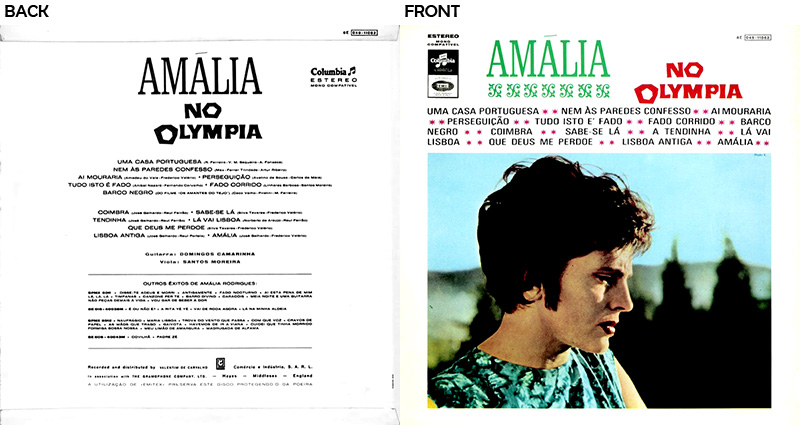 “De stem van Portugal” is hier te horen van een concert opgenomen in 1956 in het Olympia Theater in Parijs. Een van de belangrijkste fadozangeressen van Portugal (de fadotraditie stamt uit het 19e-eeuwse Lissabon en is een stedelijke caféstijl die deels is voortgekomen uit Afrikaans-Braziliaanse origine), Amalia Rodrigues werd bekend tijdens de Tweede Wereldoorlog — vooral in Brazilië en in heel Zuid-Amerika — en behield haar faam tot in de jaren negentig. Ze begon haar platencarrière pas een paar jaar daarvoor,